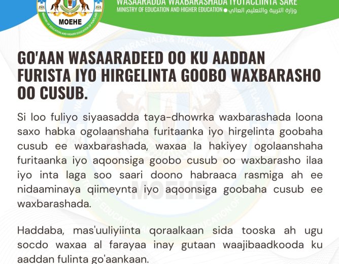 WASIIR KUXIGEENKA WASAARADDA OO DAAH-FURAY URURKA JAAMACADAHA PUNTLAND Garoowe, Juun 19, 2024 -Wasiir Kuxigeenka Wasaaradda Waxbarashada...