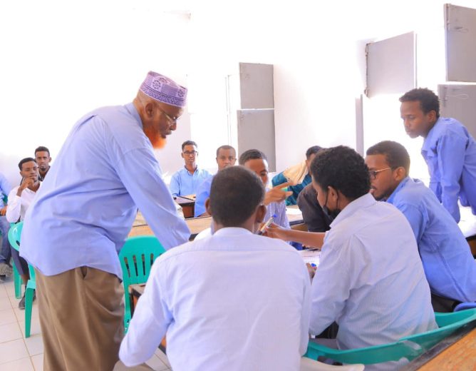Agaasimaha Waaxda Tababarrada Macalimiinta Mudane Cabdullaahi Axmed oo ay wehelinayaan Agaasimaha Waaxda Waxabarashada Toosan Mudane Cabdirisaaq...