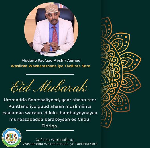 Wasiirka Wasaaradda Waxbarashada iyo Tacliinta Sare ee Puntland Mudane Hon. Fu’aad Adeer waxa uu ugu hambalyeeynayaa...