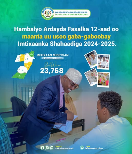 Wasaaraddu waxay bogaadinaysaa xasillinooda u ku qabsoomay Imtixaanka fasalka 12-aad, dadaalka ay bixiyeen Ardaydu iyo shaqada wanaagsan ee sugidda imtixaanadka ee ay qabteen Ilaaliyeyaasha, Kormereeyasha, Ciidanka Booliiska iyo howlwadeennada imtixaanku.