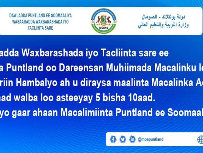 Garoowe, Oktoobar 28, 2024; Madaxda Wasaaradda Waxbarashada iyo Tacliinta Sare ee Puntland ayaa kulan is-xogwaraysi ah...