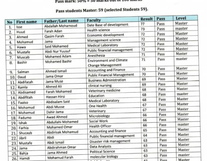 Natiijada Imtixaanka Deeqaha Masterka iyo PhD-da ee sanadka 2024/2025.