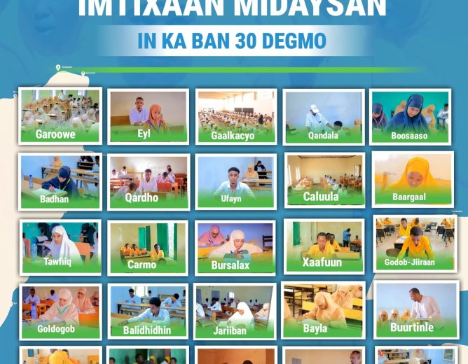 Ardayda magaalada Goldogob ee Gobolka Mudug ayaa maalintii 2-aad u fadhiya imtixaanka Shahaadiga ah ee sannad dugsiyeedka 2024-2025.