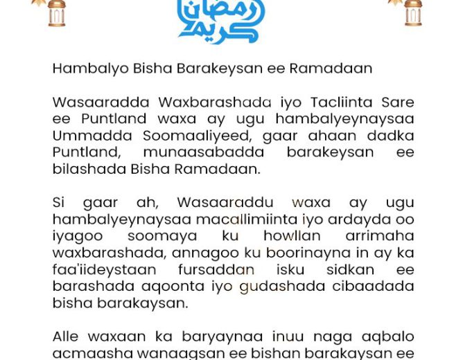 Wasaaradda Waxbarashada iyo Tacliinta Sare ee Puntland waxa ay ugu hambalyeynaysaa Ummadda Soomaaliyeed, gaar ahaan dadka...