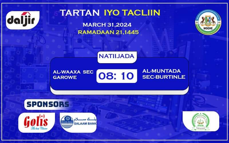 March 1, 2024 Competition Editor TARTAN IYO TACLIIN. TARTAN & TACLIIN iyo Natiijada Tartanka 1aad ee caawa. Share: