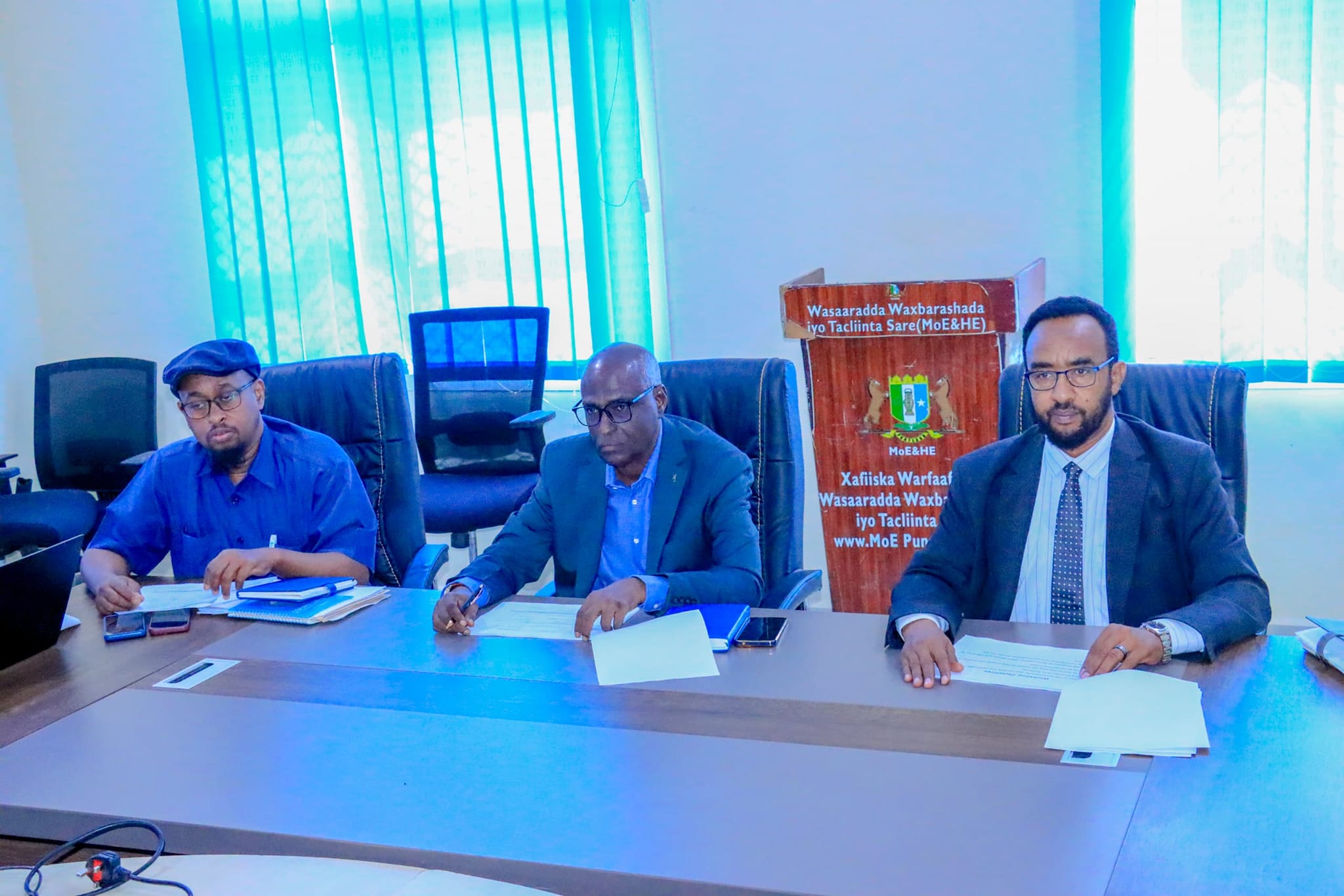 Wasiir Kuxigeenka Wasaaradda Waxbarashada iyo Tacliinta Sare ee Puntland, Mudane Maxamed Diiriye Gamadiid, Wasiiru-dowlaha Wasaaradda, Mudane Cabdisaalan Cali Faarax iyo Agaasimaha Guud ee Wasaaradda, Mudane Maxamed Cali Nuur Jubba, ayaa la qaatay Hay’adda WFP shir ku saabsan dhaqan-gelinta Istaraatiijiyadda quudinta Iskuullada Hoose/Dhexe ee Puntland.